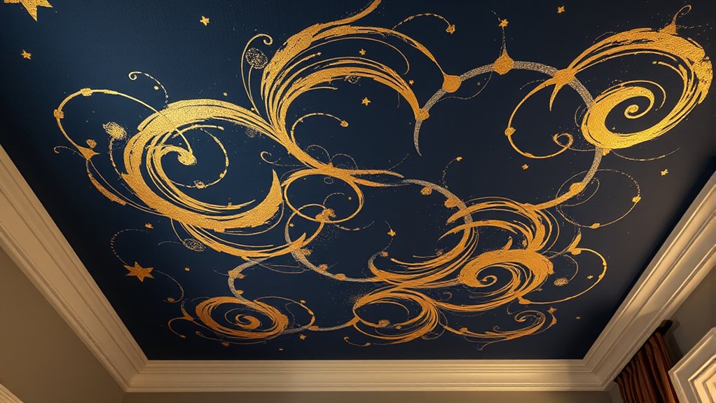 You should choose ceiling lighting that highlights your decorated ceiling, like recessed or track lighting, which provides a clean, modern look. Decorative fixtures, such as chandeliers or pendant lights, add visual interest and complement intricate ceiling designs. Opt for warm or dimmable lighting to create ambiance. Properly positioned ceiling lighting enhances your decor’s details, making your ceiling a focal point and elevating your entire space effortlessly.