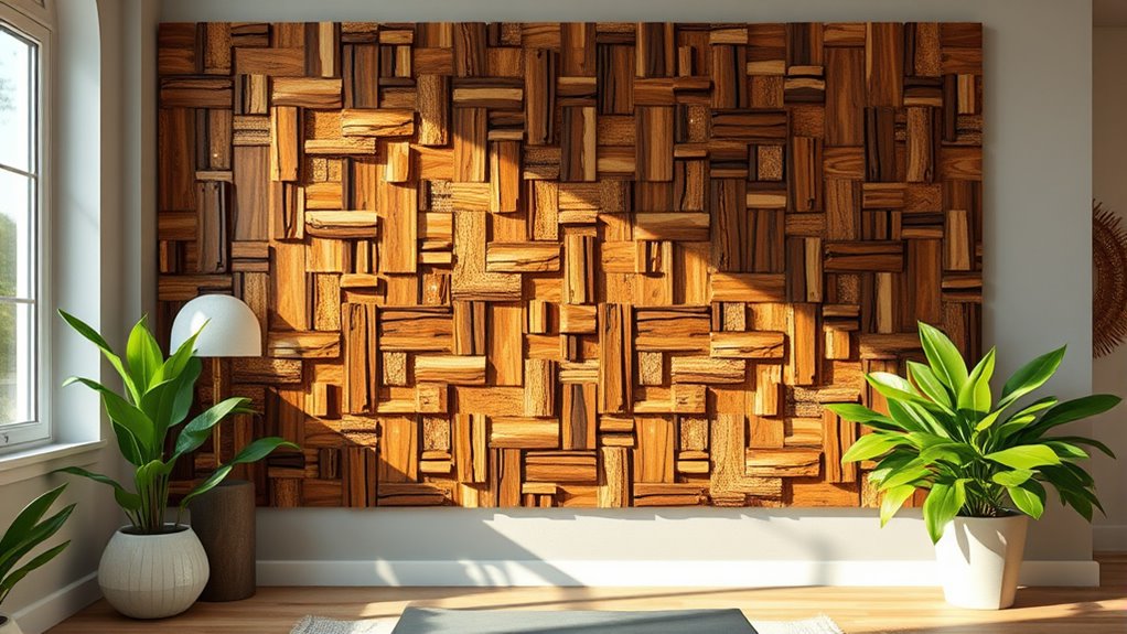 Your wall can turn into a masterpiece with eco-friendly materials that are as innovative as they are sustainable. Use recycled decor like reclaimed wood, cork, or metal art to create stunning designs. Opt for sustainable materials like bamboo panels or organic textiles for a natural touch. These choices not only protect the planet but also add unique character to your space, proving that beautiful decor can be environmentally responsible and endlessly creative.