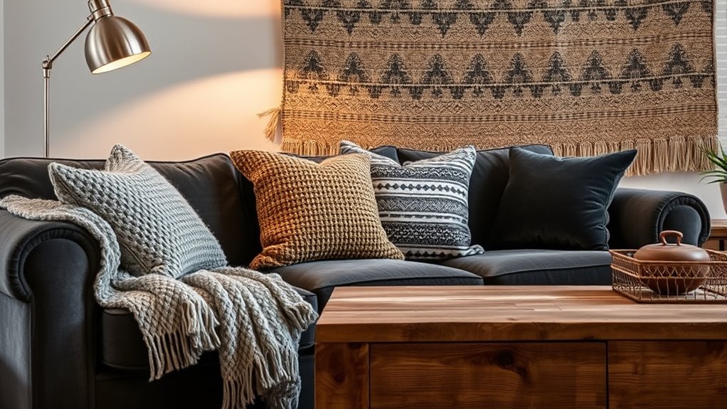 By mixing textures, you create a space that feels inviting and full of personality. Did you know rooms with layered decor tend to be 30% more welcoming? When you combine different fabrics, woods, and textiles, you add depth and warmth that instantly elevates your home’s vibe. So go ahead, experiment with textures—your perfect cozy, stylish sanctuary is just a layer away!