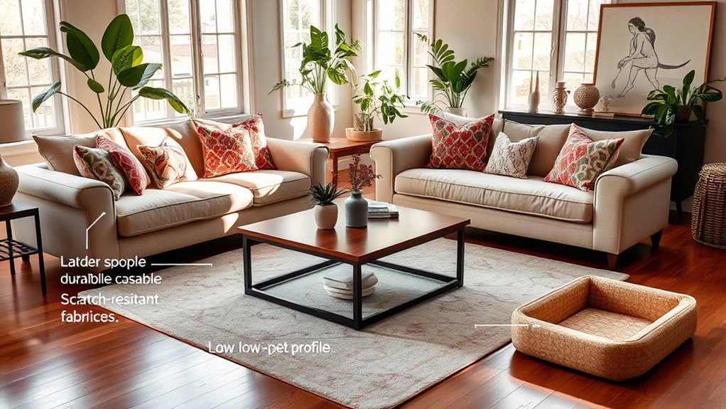 Creating a pet-friendly home decor is like weaving a sturdy fabric of style and durability that embraces your furry friends. By choosing resilient materials and thoughtful designs, you build a space where both you and your pets can thrive without worries. Remember, your home is your sanctuary—make it a welcoming haven that’s as tough as it is beautiful, ensuring your pets feel loved and comfortable in a setting that’s perfectly suited for all your adventures together.