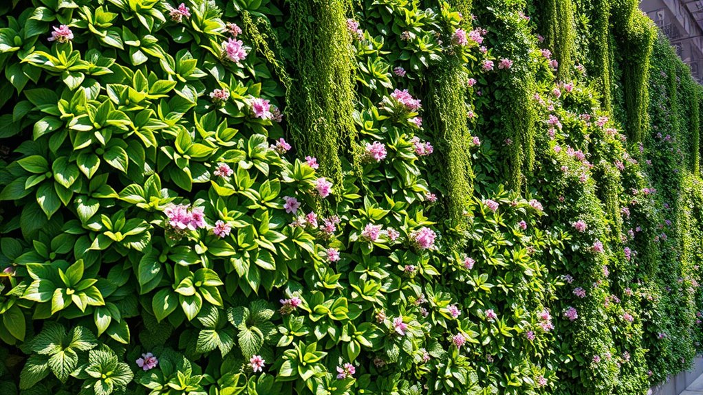 Transforming bare walls into vibrant, eco-friendly art can be simple with the right approach. You’ll want to choose sustainable materials like recycled containers and natural elements that suit your environment, while selecting plants based on sunlight, humidity, and airflow. Focus on low-maintenance, native species that thrive long-term, reducing resource waste. Incorporating water-efficient systems and eco-conscious practices guarantees lasting beauty and resilience. For more insights on creating your perfect vertical garden, keep exploring these smart strategies.