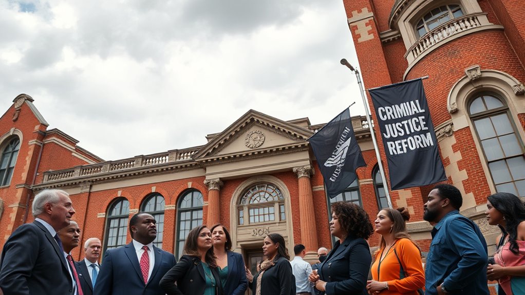 Missouri has recently enacted criminal justice reforms that focus on reducing incarceration and promoting fairer treatment. These include sentencing changes for drug offenses, emphasizing treatment over punishment, and lowering mandatory minimums. Bail reform efforts aim to make pre-trial releases more equitable and decrease jail overcrowding. These updates signal a move towards a more just system aimed at reducing recidivism and addressing social inequalities. Keep exploring to understand how these reforms could impact the justice landscape further.