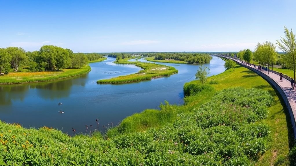 You’ll see species like native fish thrive and bird migration flourish as the ecological restoration enhances fish habitats and restores natural flow patterns. While fish like paddlefish and sturgeon benefit from improved spawning grounds, migratory birds such as herons and eagles find more nesting sites and food sources. This balance between aquatic and avian life creates a healthier, more resilient ecosystem, making the river a crucial corridor for diverse species.