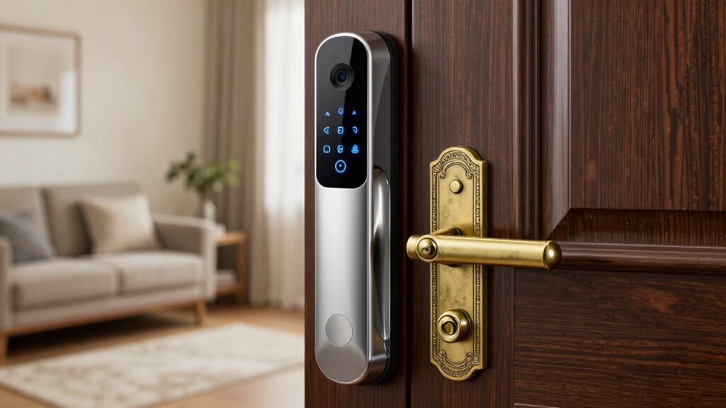 Ultimately, choosing between traditional deadbolts and smart locks is like selecting a sturdy fortress or a high-tech shield. Both protect your home, but each has its vulnerabilities and strengths. Consider your needs, just as a knight assesses whether armor or a digital sword best defends the castle. By understanding their symbolism—strength and innovation—you can decide which lock type truly guards your sanctuary, ensuring your peace of mind stands firm against any threat.