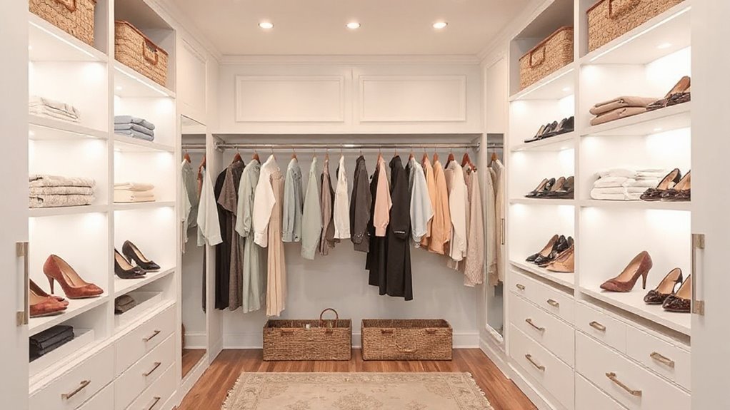 I’ve learned that measuring my closet space isn’t rocket science, though it sometimes feels like it! First, I grab a measuring tape and jot down the width, height, and depth of my closet. I also check for any obstructions like shelves or hangers. Don’t forget to measure the door if it swings in! With these numbers, I can finally choose a system that actually fits—who knew it could be that simple?