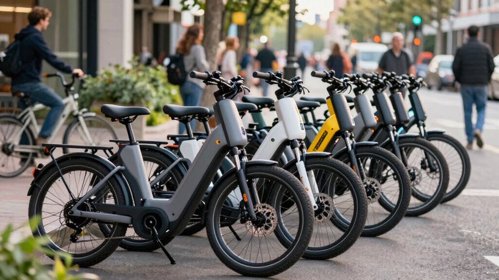As I explore e-bikes for commuting, I find that the variety of riding modes can greatly enhance my experience. Many e-bikes offer options like Pure Electric, Pedal Assist, and Manual Pedal, letting me choose based on my needs. I love how Pedal Assist modes come with adjustable levels, allowing me to customize the assistance I get, making my rides more comfortable and efficient. There’s also the Booster mode, perfect for tackling steep hills or rough terrain. The ability to switch modes seamlessly with intuitive controls means I can easily adapt to urban streets or off-road paths. These versatile riding modes not only improve my ride but also help extend my battery range for longer commutes or leisure rides.
