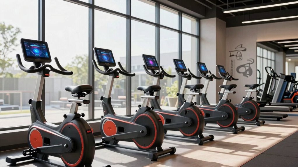 If you’re searching for the 13 best Peloton alternatives in 2026, I’ve got you covered. These bikes offer a mix of durability, high-tech features, and adjustable resistance, making workouts customizable and quiet enough for home use. Many models sync with apps for real-time stats and personalized plans, with sturdy frames supporting various weights and heights. Keep exploring to find out which bike suits your space, budget, and fitness goals perfectly.