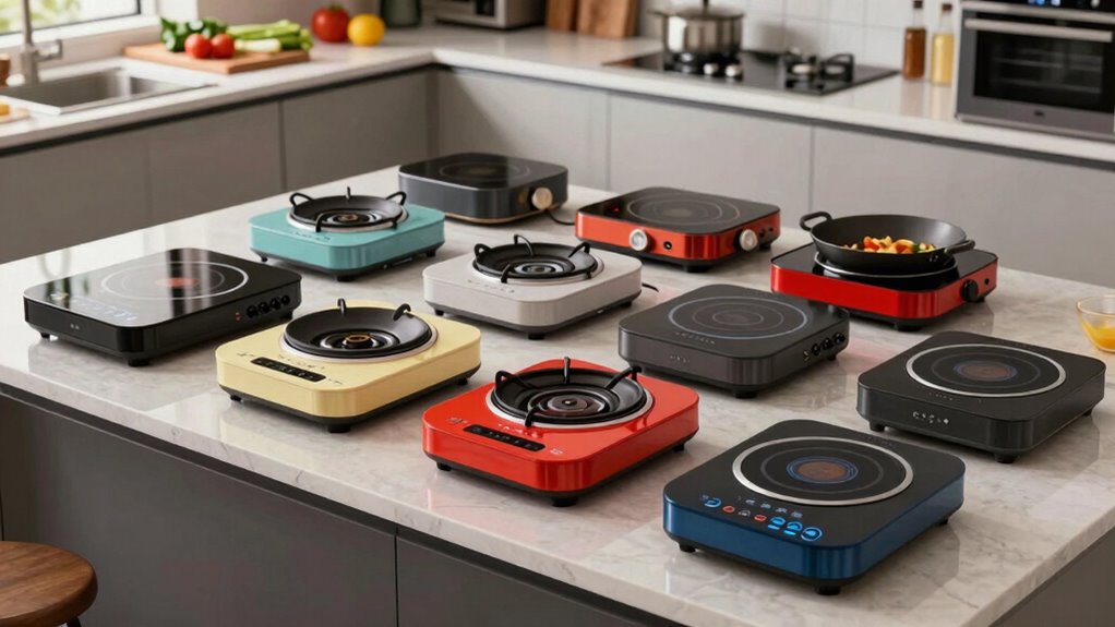When searching for the best portable induction cooktops for 2026, I’ve found some fantastic options. The Duxtop 1800W model stands out for its efficiency and safety features. The Nuwave Flex Precision offers versatility with numerous temperature settings, while the Elite Gourmet SlimStore is perfect for tight spaces. If you’re looking for multitasking, the double burner induction cooktops are a great choice. Stick with me, and I’ll share more details about these top picks!
