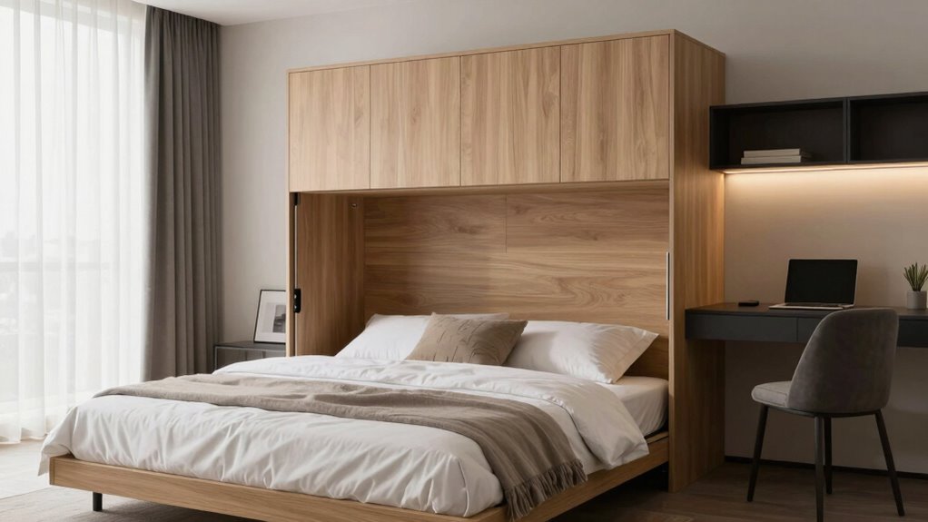 Switching from bed to desk is as smooth as gliding on ice, and I find it surprisingly easy to do daily. I just fold down the bed and lift the desk panel, which feels lightweight and effortless. Most models have simple latches or hinges, so I can transform my space in seconds without much effort. It’s a practical, seamless process that fits perfectly into my busy routine.