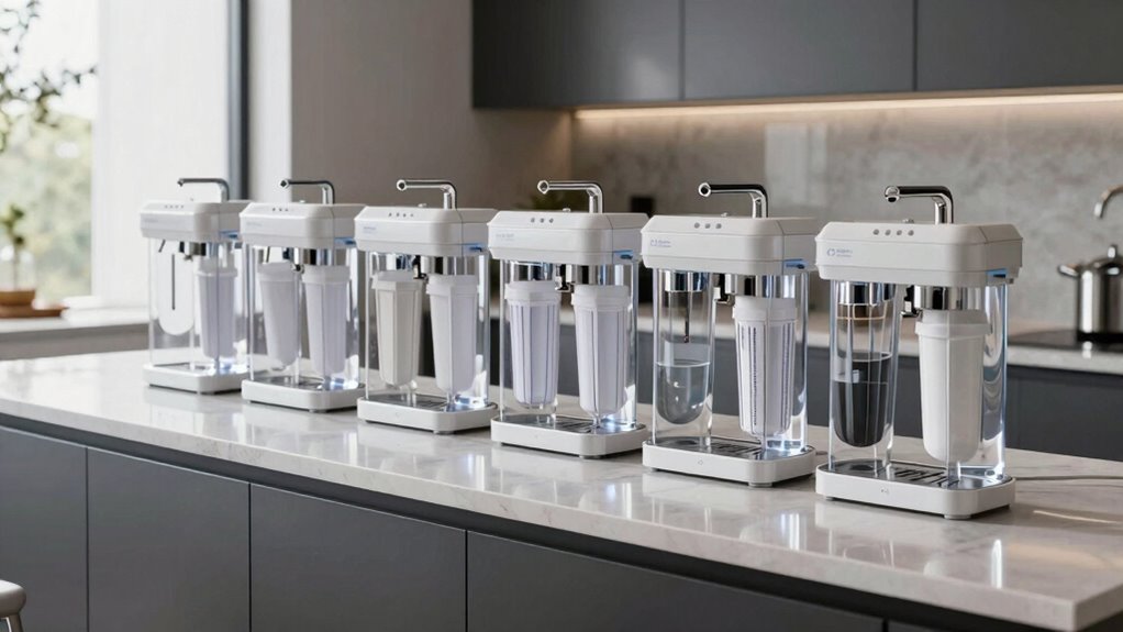 Ever wondered how easy it is to install a reverse osmosis system with a tank? Many models are designed for DIY installation, with clear instructions and color-coded tubing that make setup straightforward. Quick-connect fittings can cut installation time considerably, so you won’t need professional help. The compact size of most systems allows them to fit conveniently under standard kitchen sinks, perfect for residential spaces. Some units feature transparent first-stage filter housings, making it easy to monitor filter conditions and know when replacements are due. Additionally, certain models operate without electricity, simplifying installation further by eliminating the need for electrical connections. This user-friendly design guarantees you can set up your system quickly and hassle-free, getting clean water without the stress of complicated installation processes.