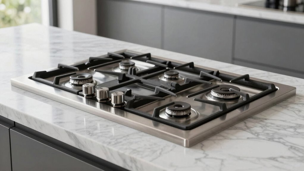 Imagine a seamless dance between your countertop and range—yes, slide-in gas ranges are typically designed to fit snugly into standard countertops. Most models align well with existing surfaces, creating a sleek, integrated look. However, slight adjustments may be needed for perfect harmony, especially if your countertops have unique edges or thicknesses. I recommend checking the specific dimensions of the range and your counters to guarantee a smooth fit.