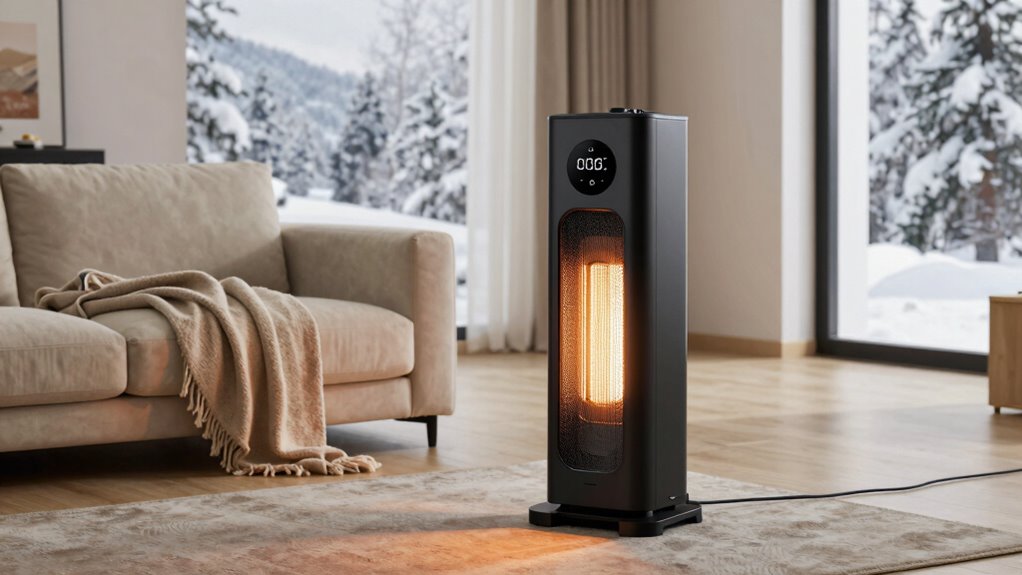 Imagine if I told you that the right space heater could transform your large room into a cozy retreat, saving energy and money? Many believe smart tech and powerful heating are just marketing tricks, but I’ve found they genuinely make a difference. With the right choice, you’ll enjoy warmth and comfort without breaking the bank. So, don’t dismiss the power of modern heaters—they might just prove this theory true.